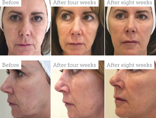 Setelah 2 minggu, kulit akan lebih bercahaya, sehat secara alami karena efek hidrasi kulit yang meningkat. Jika melakukan perawatan ini sesuai dengan protokol yang dianjurkan dokter, hasil yang didapatkan akan lebih baik seperti kulit menjadi lebih halus, lebih kencang dan kerutan-kerutan halus akan tersamarkan.